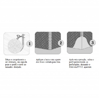 Corte na medida desejada, encoste na quina e dobre manualmente, cubra os orifícios com reboco ou gesso.